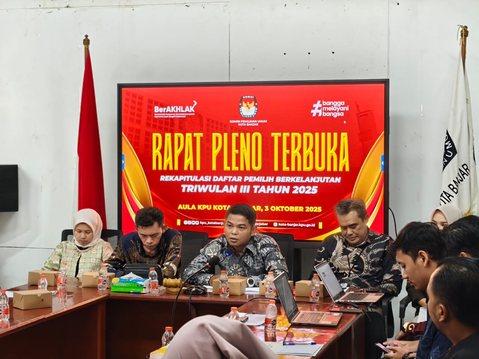 Hasil rapat pleno tersebut menunjukkan bahwa jumlah pemilih aktif di Kota Banjar pada Triwulan III Tahun 2025 tercatat sebanyak 154.889 pemilih. Angka ini mengalami kenaikan sebesar 0,56% dibandingkan dengan DPB Triwulan II Tahun 2025 yang berjumlah 154.026 pemilih. Kenaikan jumlah pemilih tersebut sebagian besar disumbang oleh pemilih pemula yang telah berusia 17 tahun, yang untuk pertama kalinya masuk ke dalam daftar pemilih berkelanjutan. Selain itu, bila dibandingkan dengan Daftar Pemilih Tetap (DPT) Pilkada Tahun 2024 yang tercatat sebanyak 154.425 pemilih, terdapat kenaikan sebesar 0,30%. Fakta ini menunjukkan bahwa dinamika jumlah pemilih di Kota Banjar terus bergerak seiring dengan perkembangan demografi penduduk, khususnya di kalangan pemilih muda.