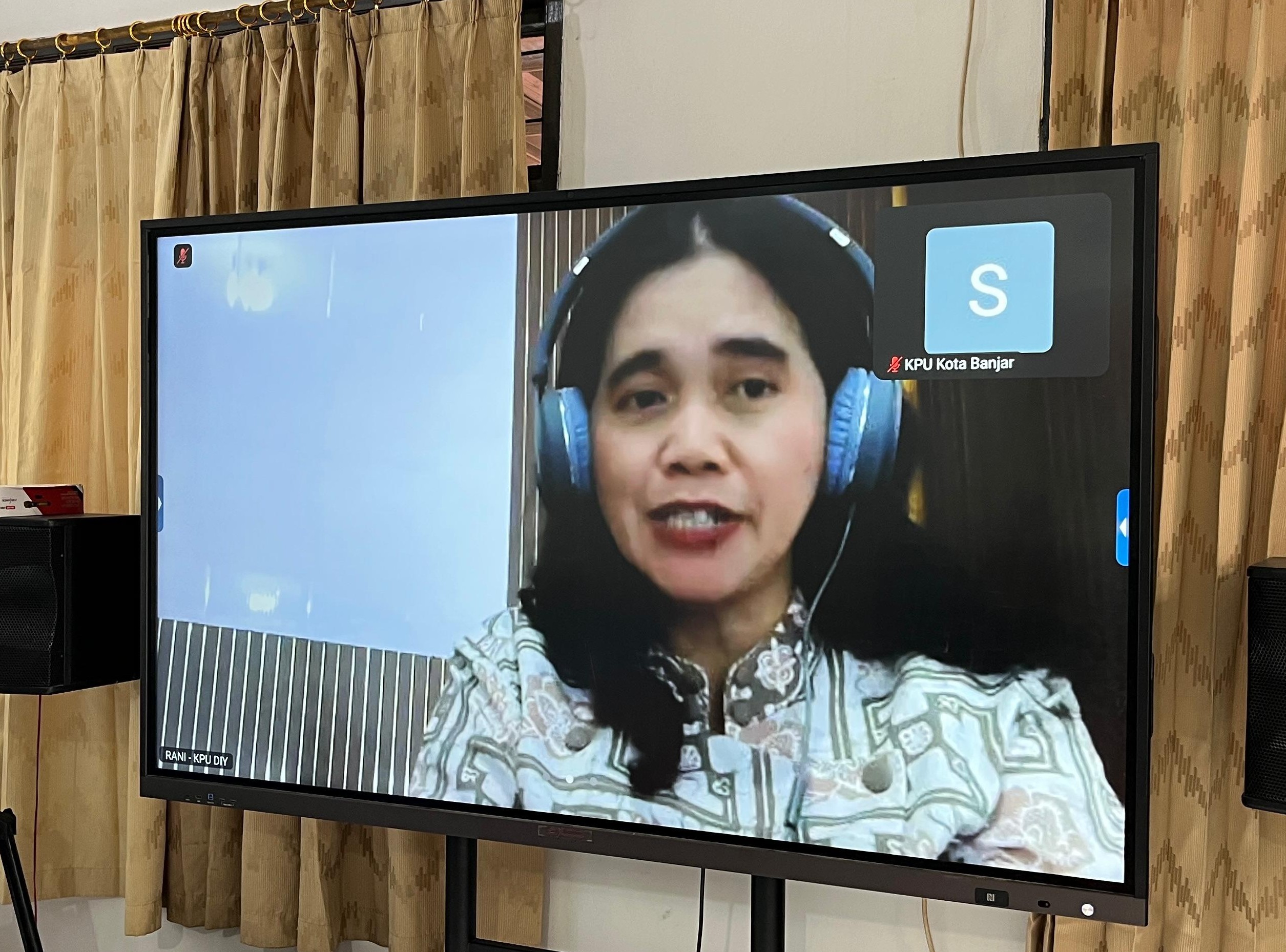 Ketua Divisi Sosdiklih, Parmas, dan SDM KPU Daerah Istimewa Yogyakarta (DIY), Sri Surani, menyampaikan keynote speech Parmas Insight Chapter #9 (KPU Kota Banjar/Panji)