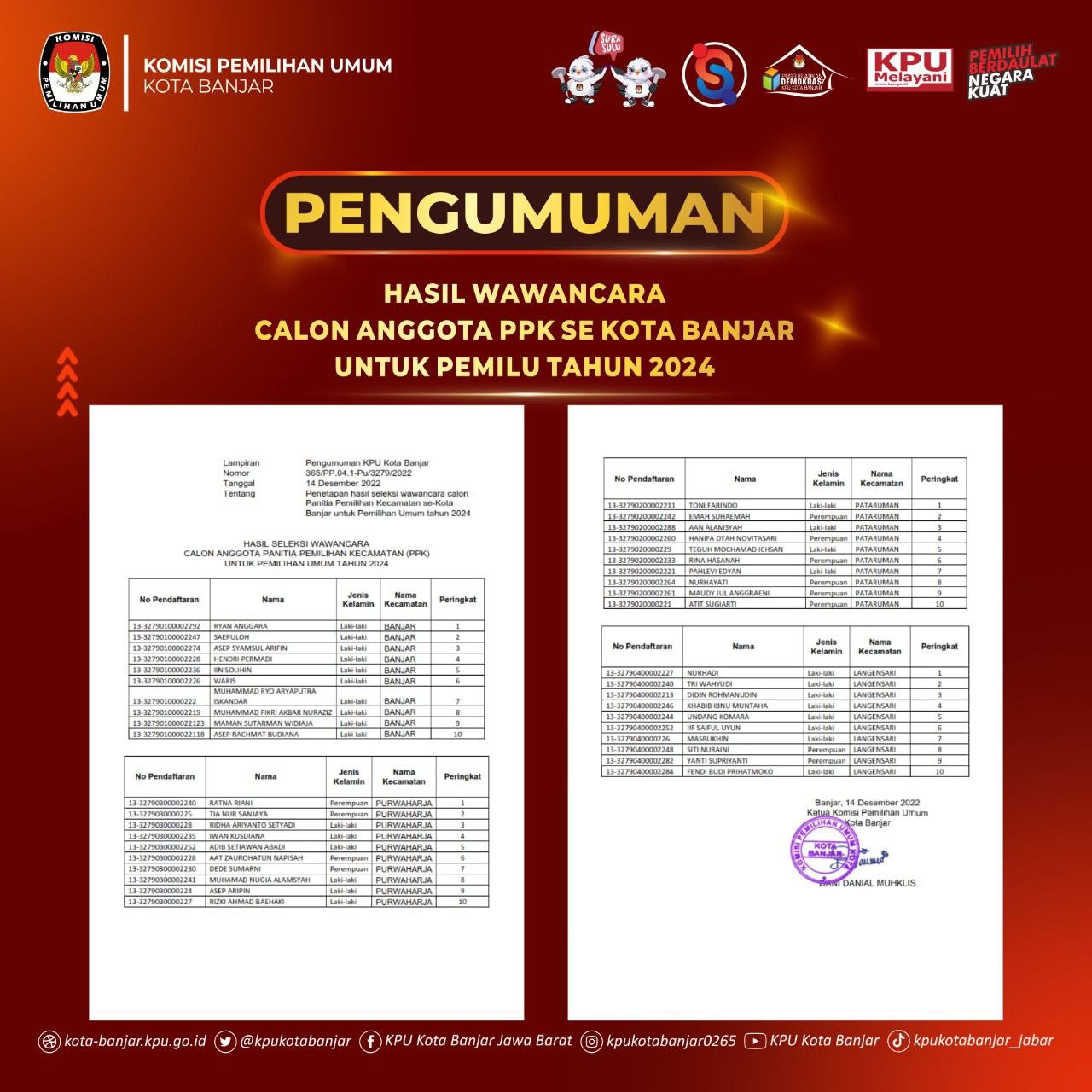 Hasil Wawancara Calon anggota PPK Se Kota Banjar untuk Pemilu Tahun 2024