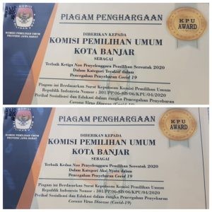 KPU Kota Banjar meraih dua Penghargaan yang diserahkan langsung oleh Ketua KPU Provinsi Jawa Barat kepada Anggota KPU Kota Banjar yaitu: