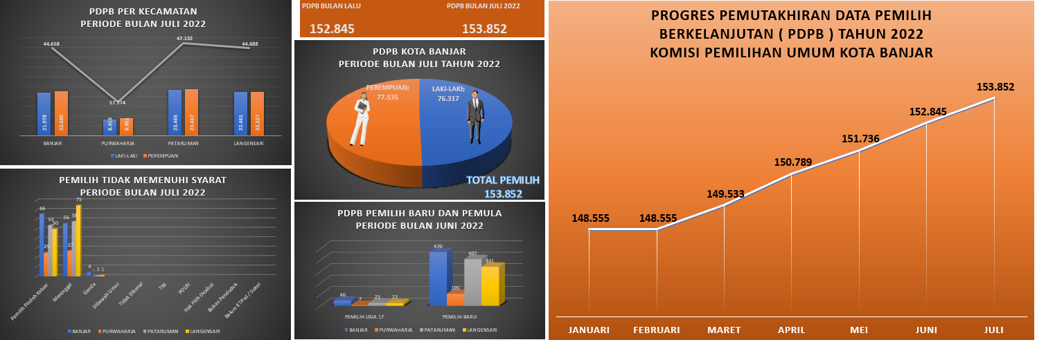 Penetapan Hasil rapat Koordinasi Internal Pemutakhiran data pemilih Berkelanjutan (PDPB) bulan Juli 2022 di tetapkan , dengan jumlah 153.852 (seratus lima puluh tiga ribu delapan ratus lima puluh dua) pemilih dengan rincian pemilih laki-laki berjumlah 76.317 (Tujuh puluh enam ribu tiga ratus tujuh belas ) pemilih dan pemilih perempuan berjumlah 77.535 (Tujuh Puluh Tujuh ribu lima ratus tiga puluh lima) pemilih yang tersebar di 4 kecamatan.