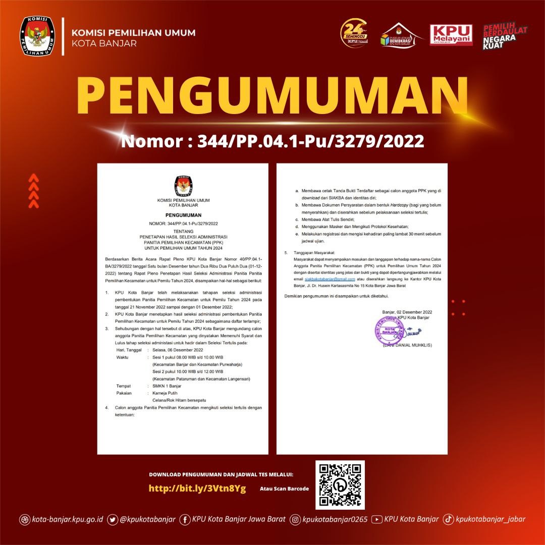 Penetapan Hasil Seleksi Administrasi Panitia Pemilihan Kecamatan (PPK) untuk Pemilihan Umum Tahun 2024