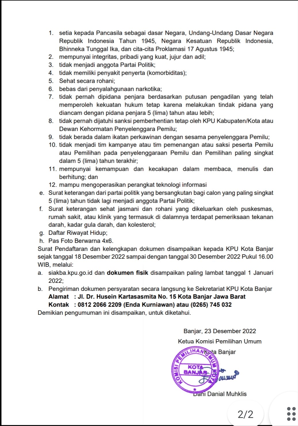 PENGUMUMAN NOMOR: 381/PP.04.1-Pu/3279/2022 PERUBAHAN ATAS PENGUMUMAN NOMOR 372/PP.04.1-Pu/3279/2022 TENTANG SELEKSI CALON ANGGOTA PANITIA PEMUNGUTAN SUARA UNTUK PEMILIHAN UMUM TAHUN 2024