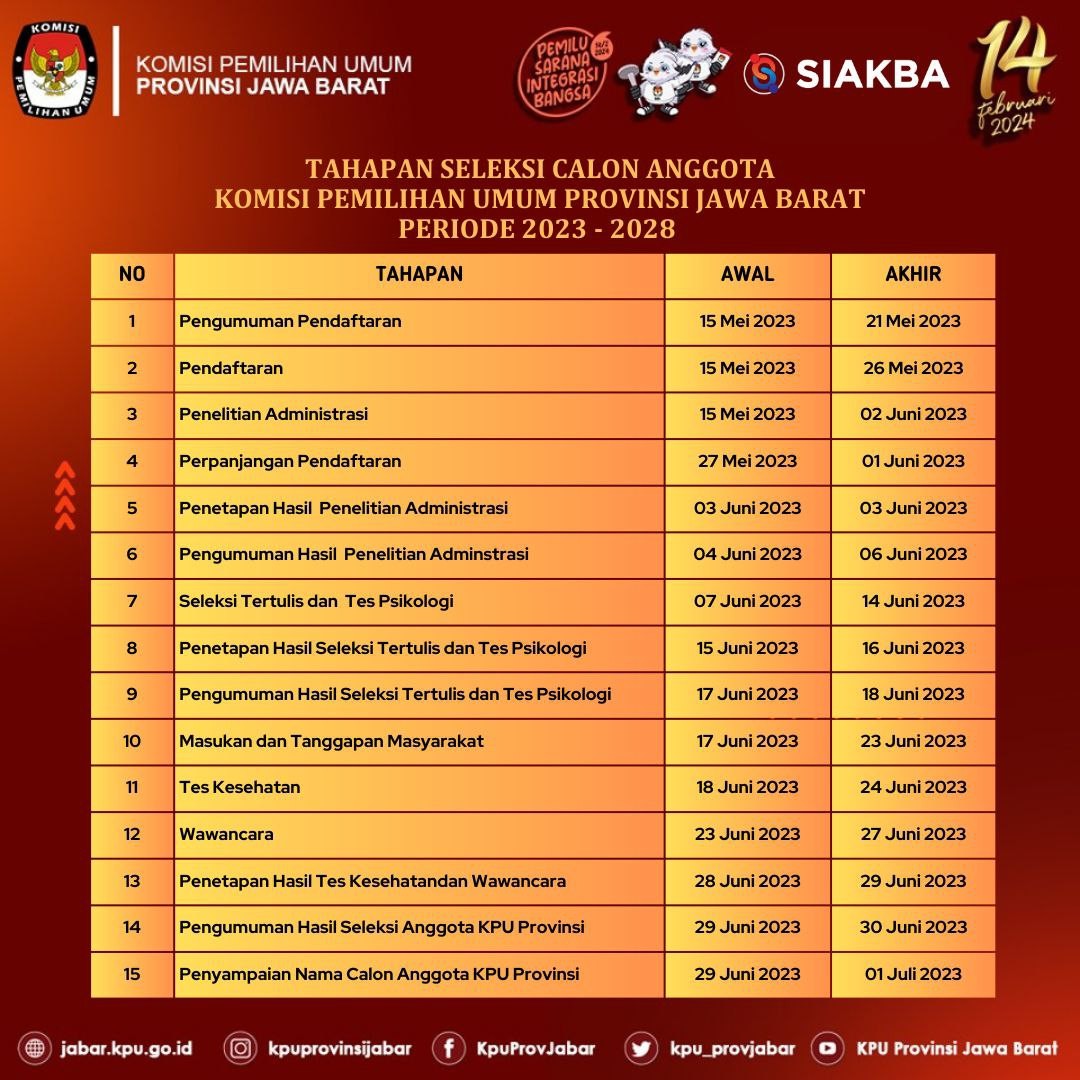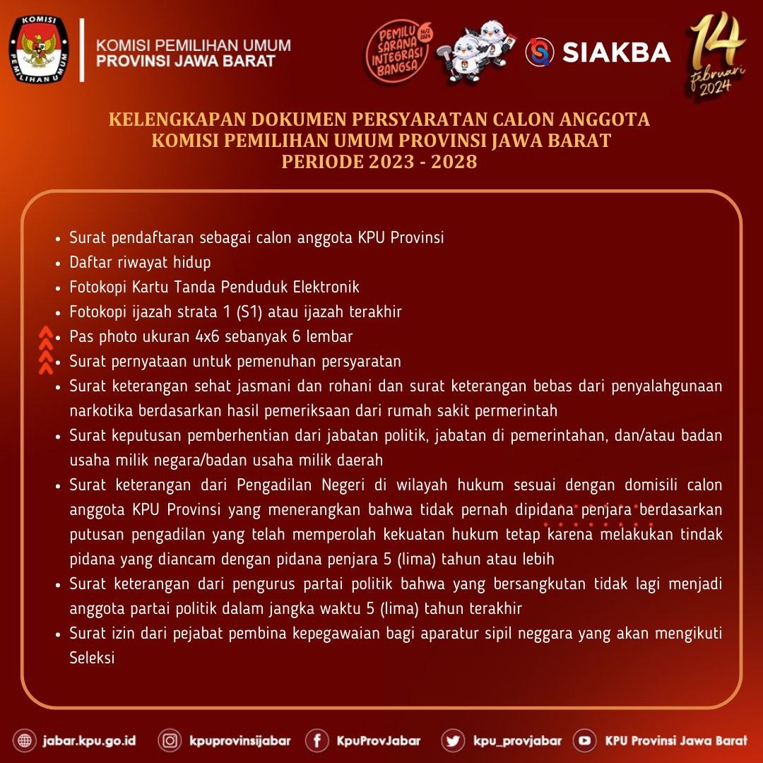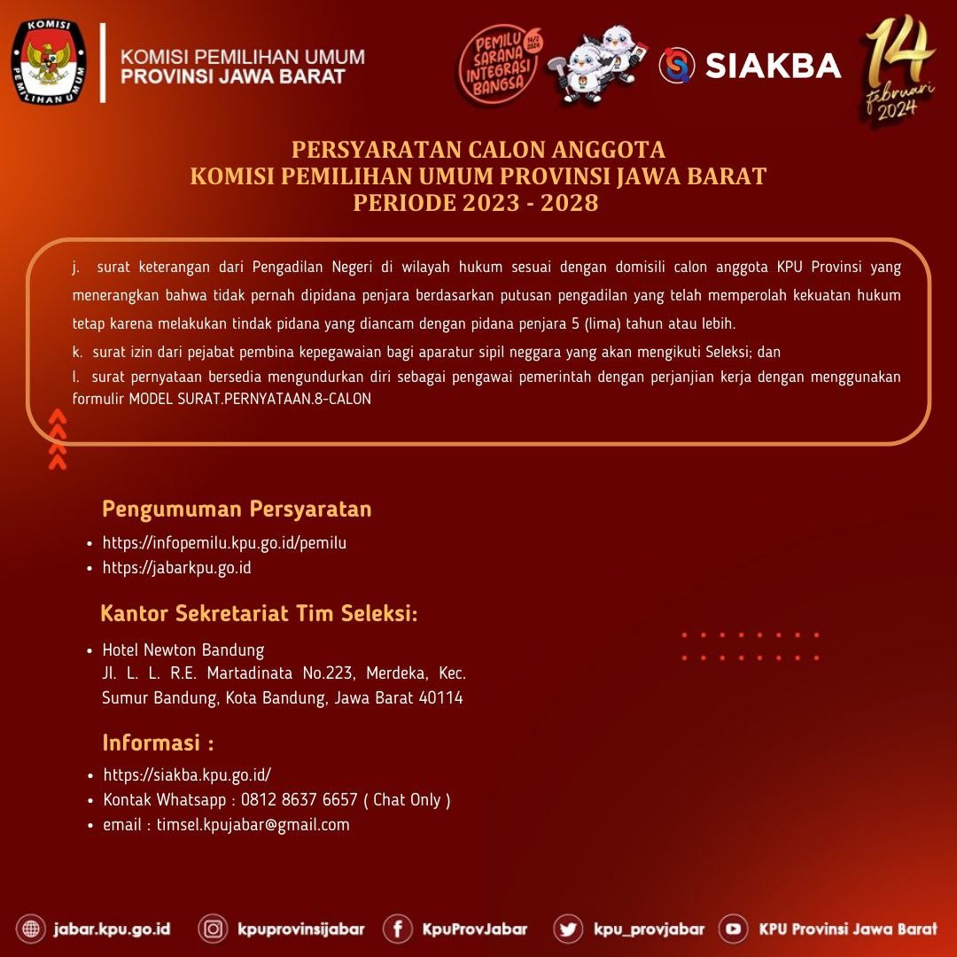 Berikut Pengumuman Seleksi Calon Anggota Komisi Pemilihan Umum Provinsi Jawa Barat Periode 2023-2028 :