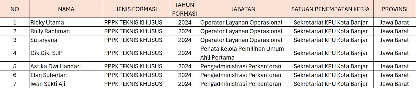 Kota Banjar, 2 Mei 2025 – Pemanggilan resmi Pegawai Pemerintah dengan Perjanjian Kerja (PPPK) Teknis Tahun 2024 oleh Komisi Pemilihan Umum Republik Indonesia membawa angin segar bagi penguatan organisasi KPU di seluruh Indonesia. Ratusan individu terbaik dari berbagai daerah telah dinyatakan lulus seleksi dan dipanggil untuk segera melaksanakan tugas di lingkungan Sekretariat Jenderal KPU, baik di pusat, provinsi, maupun kabupaten/kota.