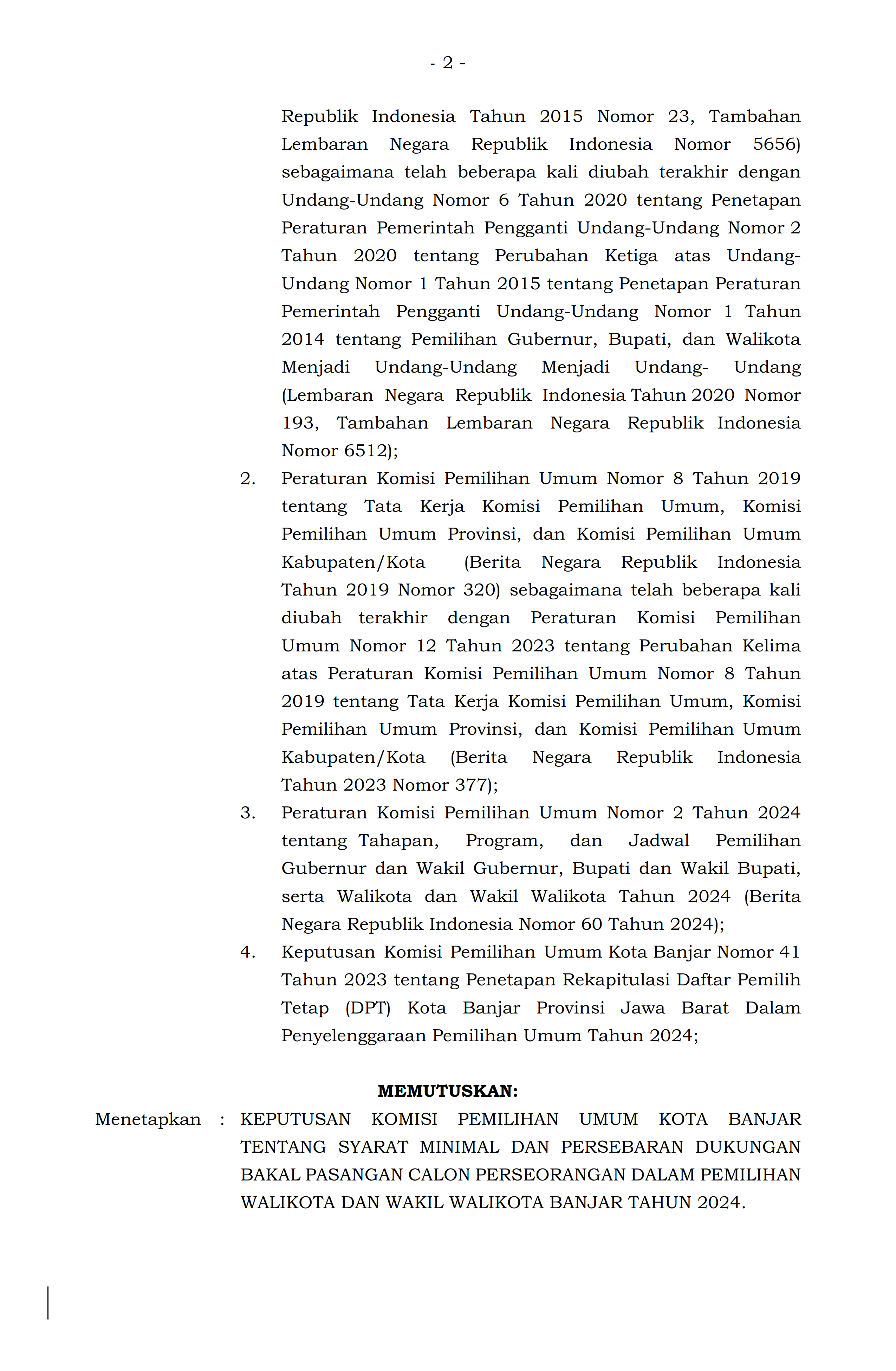 SYARAT MINIMAL DAN PERSEBARAN DUKUNGAN BAKAL PASANGAN CALON PERSEORANGAN DALAM PEMILIHAN WALIKOTA DAN WAKIL WALIKOTA BANJAR TAHUN 2024