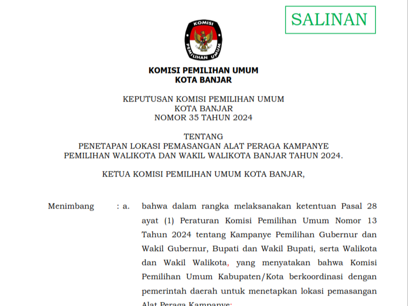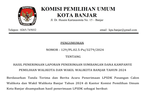 Berdasarkan ketentuan Pasal 8 Peraturan Komisi Pemilihan Umum Nomor 13 Tahun 2024 Tentang Kampanye Pemilihan Gubernur Dan Wakil Gubernur, Bupati Dan Wakil Bupati, Serta Walikota Dan Wakil Walikota bahwa “KPU Provinsi dan KPU Kabupaten/Kota mengumumkan nama tim Kampanye dan petugas penghubung Pasangan Calon sesuai dengan tingkatannya yang telah didaftarkan sebagaimana dimaksud dalam Pasal 7 ayat (3) pada papan pengumuman dan/atau laman KPU Provinsi dan KPU Kabupaten/Kota”.