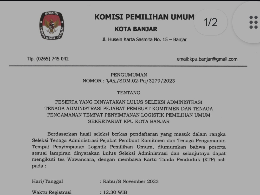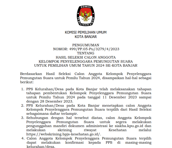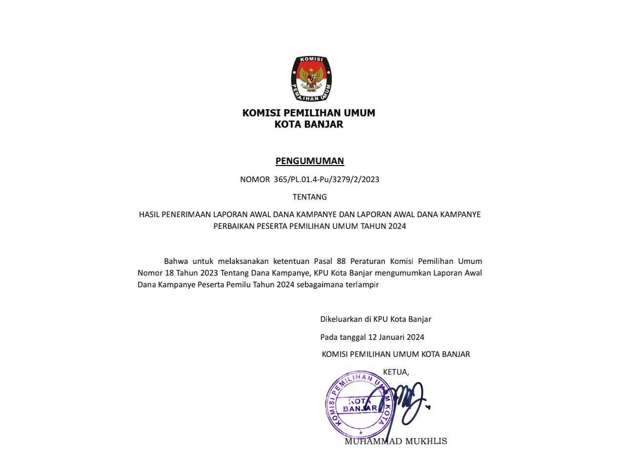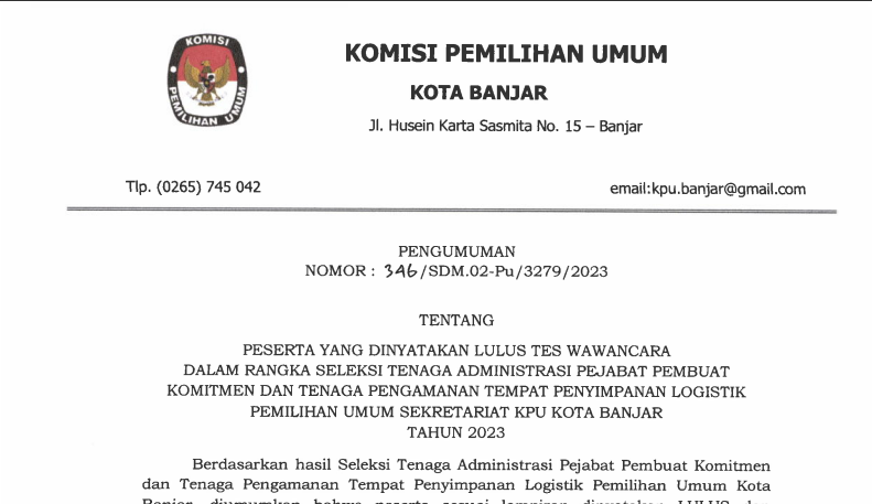 Pengumuman serta data lengkap calon tetap Anggota DPRD Kota Banjar dapat dilihat melalui portal publikasi https://infopemilu.kpu.go.id/